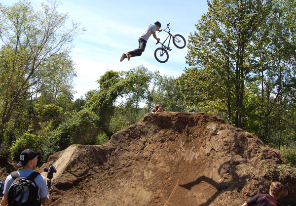 Another unorthodox BMX weekend goes down in the history books. Lots of great riding, good people, awesome music and smiles all day on saturday at the Bike Lot in Richmond Va.- and to top it all off, Mat Hoffman was on hand to judge, hang out and get people stoked all weekend. The guys from Virginia beach built a makeshift lemonade stand out of scrap pallets, and raised 400 bucks for Mikey Aitken, by spray painting “support bmx” on T-shirts, and Darryl Nau made the hugest ever, get well card and had a couple hundred people sign it for Mikey as well, pretty danged cool!